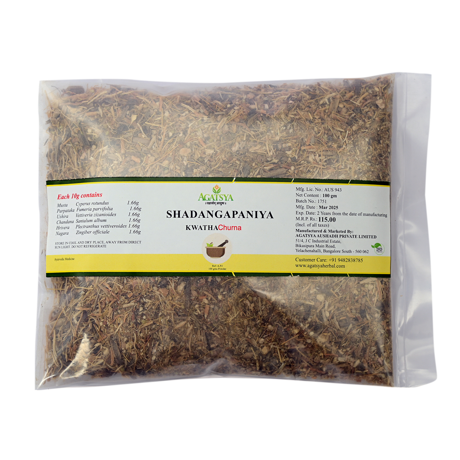 Agatsya Shadanga paniya Kwatha Churna is the herbal coarse powder of six herbs used in the form of decoction. It is extensively used in the management of fever as it relieves excessive thirst and reduces burning sensation. It helps to combat dehydration, aids detoxifying the body and also used in the treatment of Diarhhoea and Anorexia.